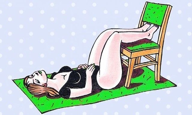 Лежачий камень И снова упражнение для ленивых! Для его выполнения тебе понадобится стул. Ляг на пол, желательно на теплый ковер, и забрось ноги на стул. Упражнение помогает восстановить правильный кровоток во всём теле, а спина при этом сможет отдохнуть после дневных нагрузок.
